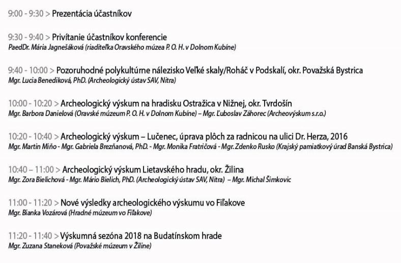 Dňa 6. decembra 2018 sa na Oravskom hrade uskutoční v poradí už tretia konferencia o výsledkoch nových archeologických výskumov na strednom Slovensku, ktorú tentokrát organizuje Oravské múzeum P. O. Hviezdoslava.